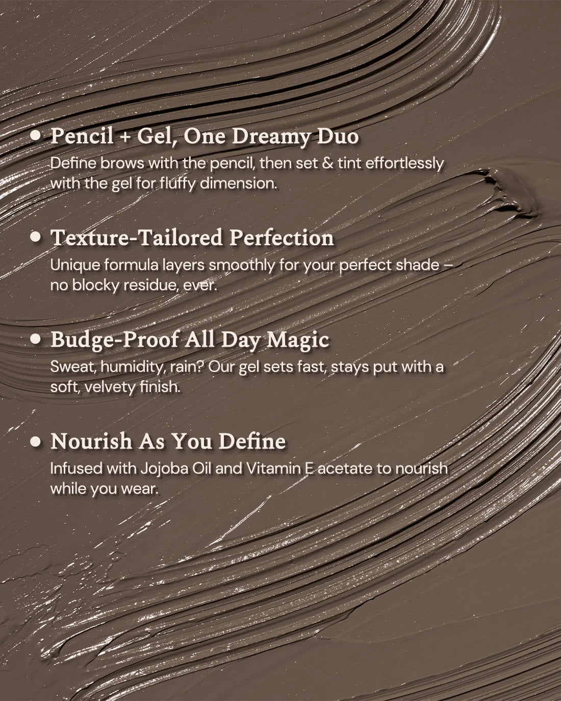 Oboustranná tužka a gel na obočí v jednom – pro dokonale tvarované, přirozeně plné a upravené obočí po celý den. Tužka má zkosený hrot ve tvaru paralelogramu, který umožňuje precizní vykreslení jednotlivých chloupků i rychlé vyplnění větší plochy bez nutnosti ořezávání. Na druhém konci se nachází barevně sladěný gel, který zafixuje tvar a barvu obočí a zajistí dlouhotrvající, neotíratelný efekt.