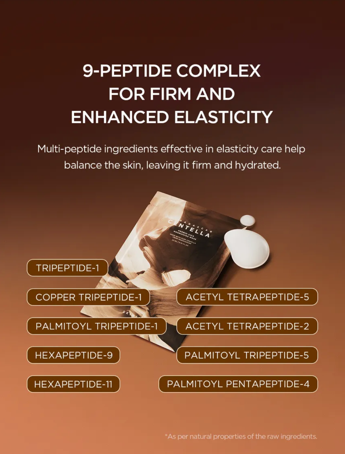 - 9-Peptide Complex – zlepšuje elasticitu, podporuje zpevnění pleti a redukuje známky únavy.