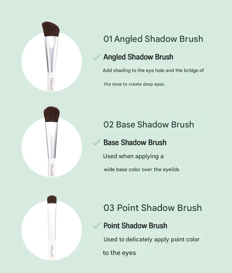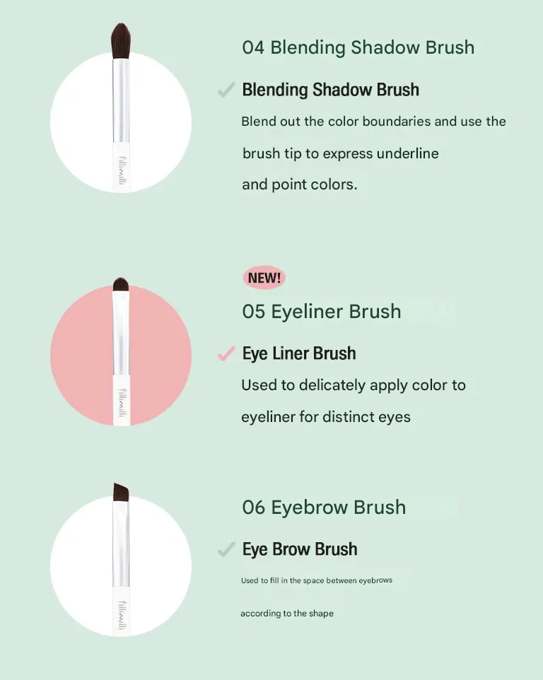 Tato sada šesti profesionálních štětců fillimilli je vytvořená pro snadné a přesné líčení očí. Každý štětec má jemná syntetická vlákna, která dobře nabírají pigment a rovnoměrně ho rozprostřou po víčku.