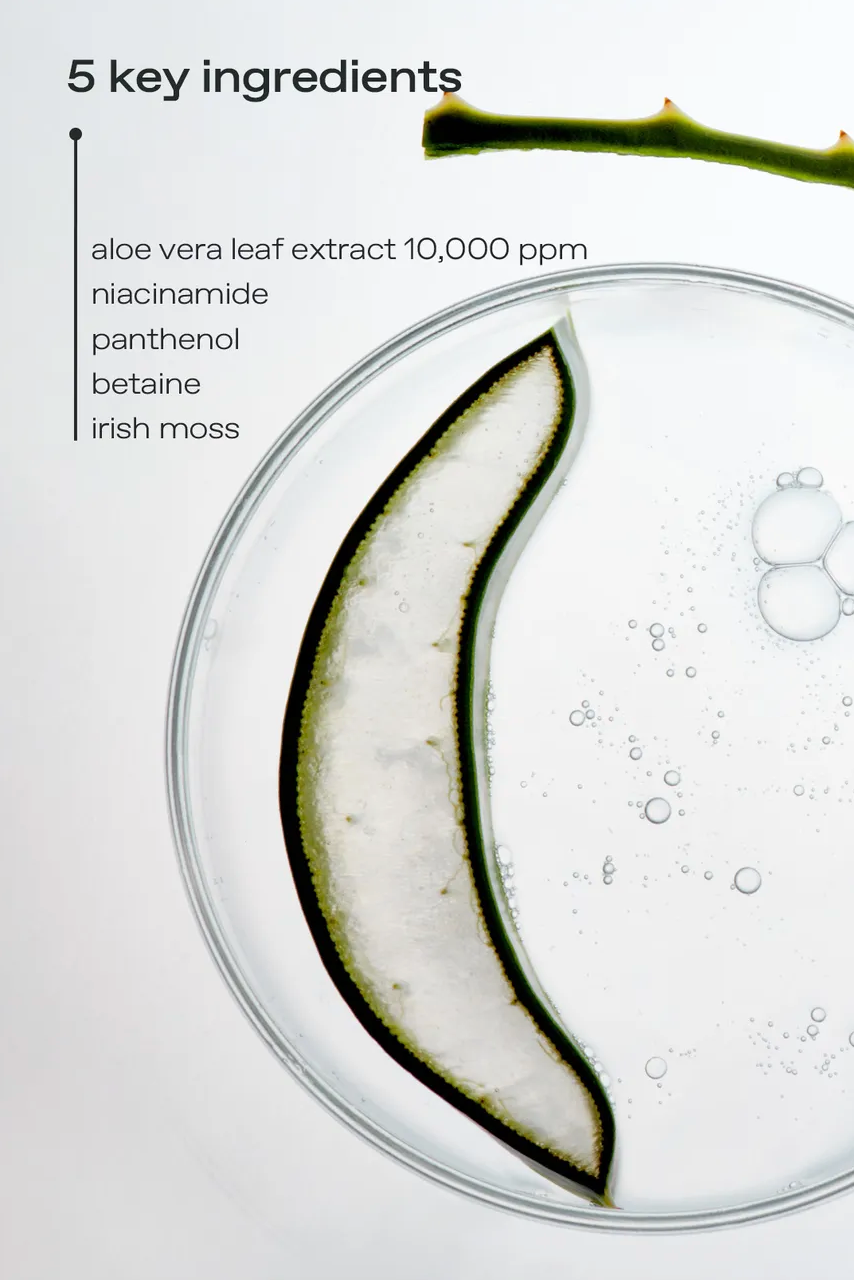 aqua(water), dipropylene glycol, glycerin, butylene glycol, niacinamide(vitamin b3), aloe barbadensis(aloe vera) leaf extract, ceratonia siliqua(carob) gum, betaine, chondrus crispus powder, hydroxyacetophenone, chondrus crispus(carrageenan), panthenol(vitamin b5), cellulose gum, caprylyl glycol, algin, potassium chloride, sucrose, adenosine, polyglyceryl-10 laurate, polyglyceryl-10 myristate, xanthan gum, disodium edta, parfum(fragrance), dextrin, pantolactone, dipotassium glycyrrhizate, silica, 1,2-hexanediol, acrylates/ammonium methacrylate copolymer, polyquaternium-51