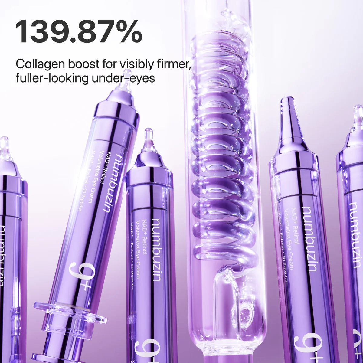 numbuzin No. 9 NAD+ Retinol Volumetox Eye Cream je oční krém, který zpevňuje, vyhlazuje a rozjasňuje oční okolí. Jeho perleťově krémová textura okamžitě vyživuje a opticky vyplňuje jemné linky a vrásky, zatímco pokožku kolem očí zanechává hebkou a pružnou. Pomáhá redukovat tmavé kruhy, otoky a známky únavy, a dodává pohledu mladistvý, svěží vzhled.